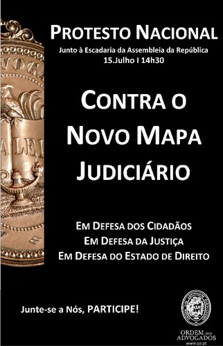 Amanhã, 15JUL, pelas 14H30, realizar-se-á um Protesto Nacional junto à escadaria da Assembleia da República, contra a reorganização judiciária (novo mapa judicial).