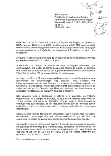 Ora, tudo isto revela uma lamentável falta de conhecimento da realidade e significa na prática, o reconhecimento por parte do Ministério que não quer, realmente, dotar os tribunais dos meios adequados a uma resposta célere e eficaz aos constrangimentos, há muito diagnosticados, no sistema de administração da Justiça portuguesa, e é também sinal de desconsideração para com os Funcionários ao optar (o Ministério da Justiça) pelo não cumprimento do despacho nº. 9961/2010 na constituição das unidades processuais, no que concerne aos Funcionários.